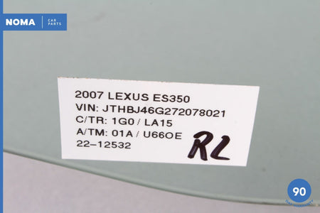 07-12 Lexus ES350 XV40 Rear Left Driver Side Door Window Glass 68114-33160 OEM