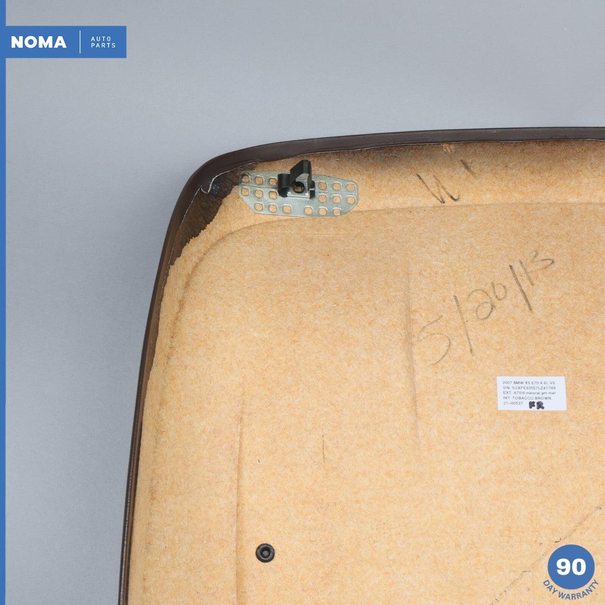 07-13 BMW X5 E70 Front Right Passenger Side Seat Back Plate Panel w/ Pocket OEM