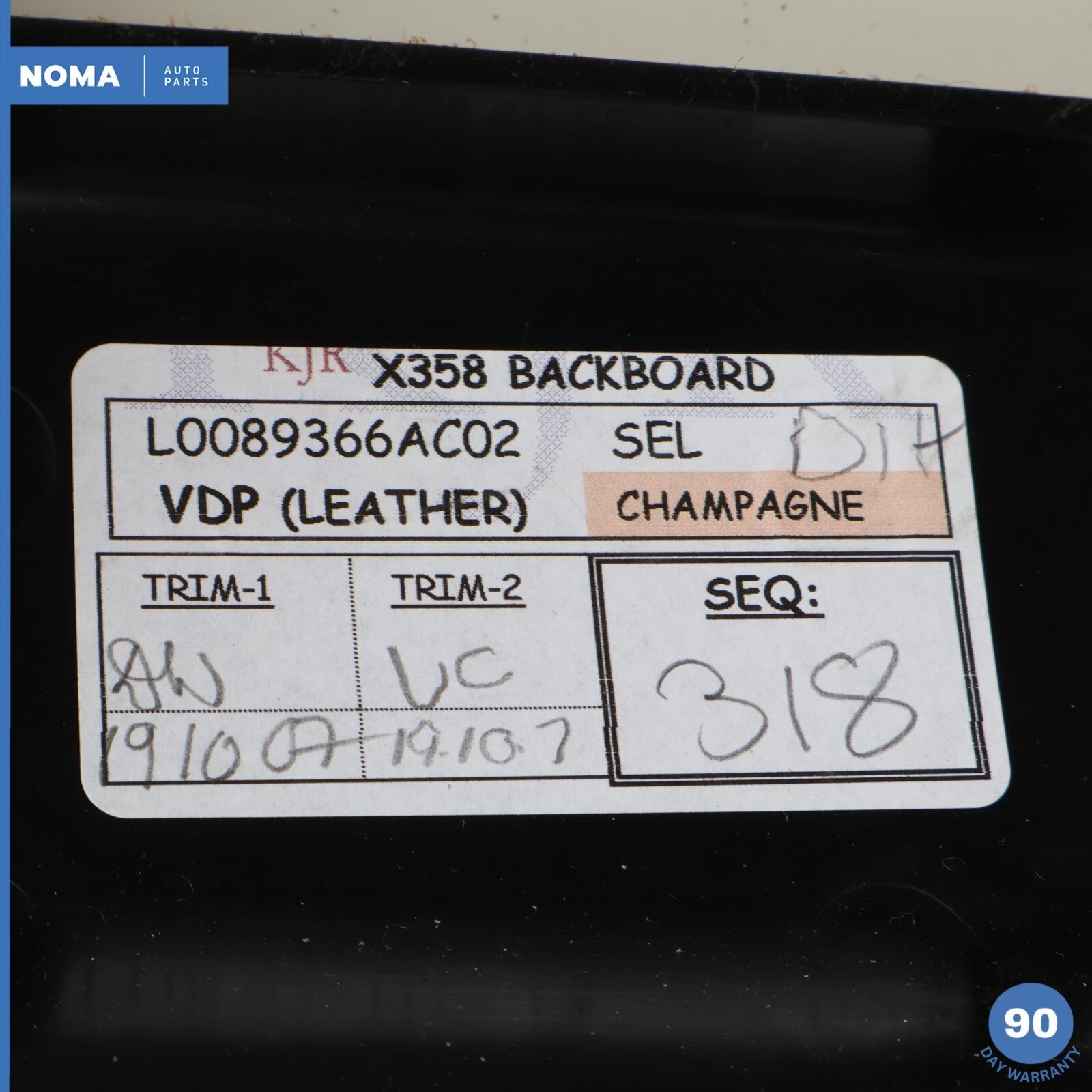 08-09 Jaguar XJ8 VDP X358 Front Left or Right Seat Backboard w/ Pocket SEL OEM
