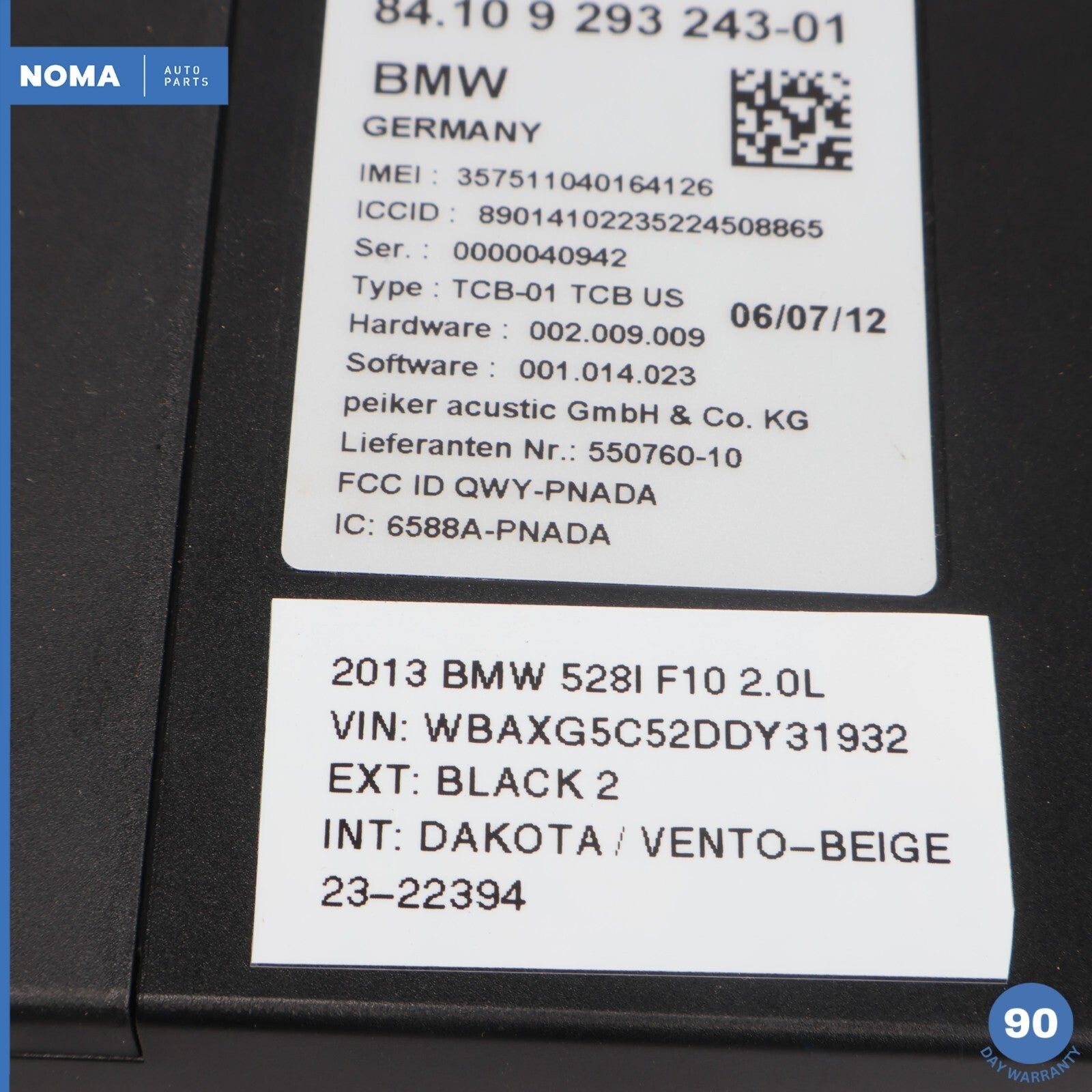 12-16 BMW 528i F10 TCB Telematics Electronic Control Module 84109293243 OEM
