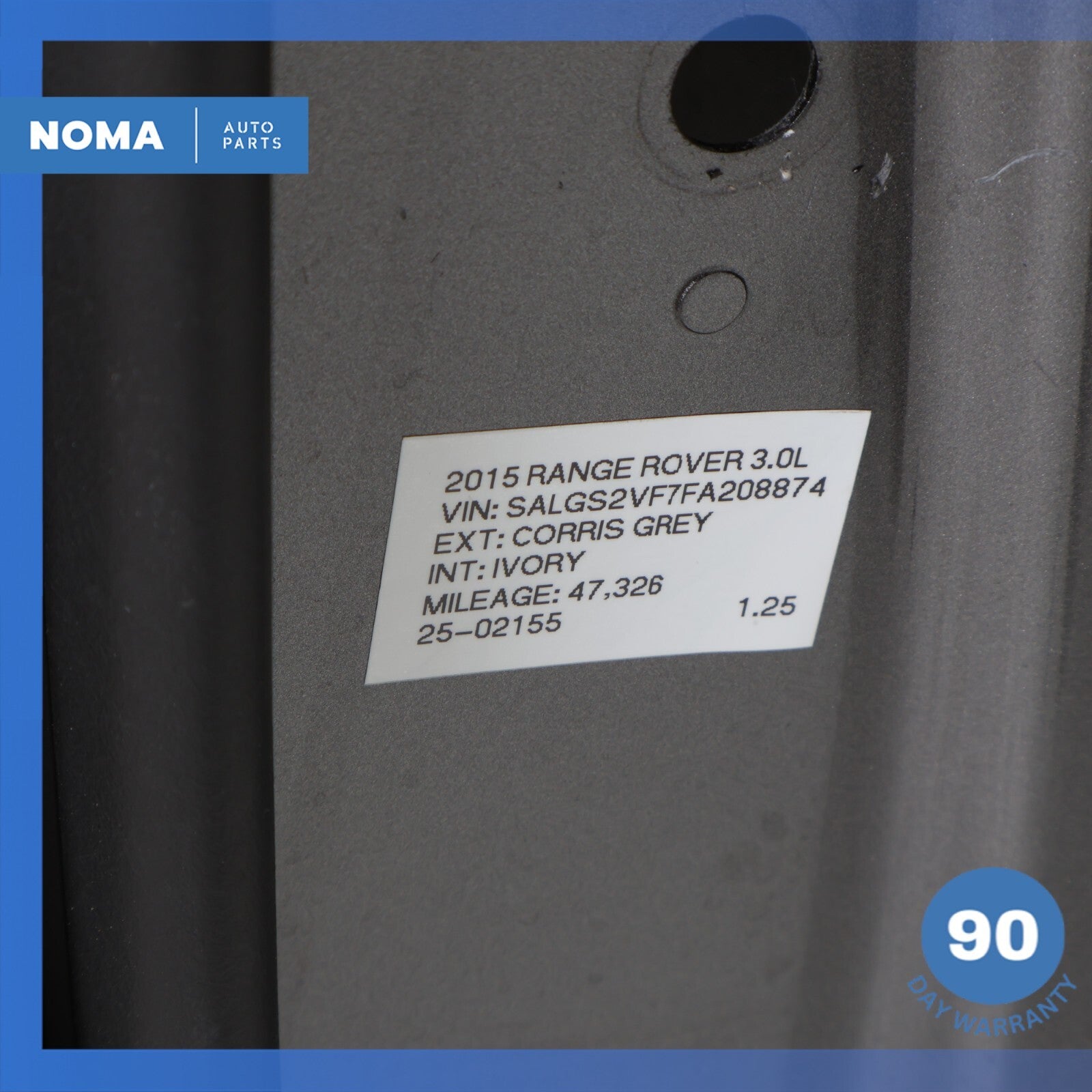 13-22 LR Range Rover L405 Front Right Passenger Side Door Panel Shell Gray OEM