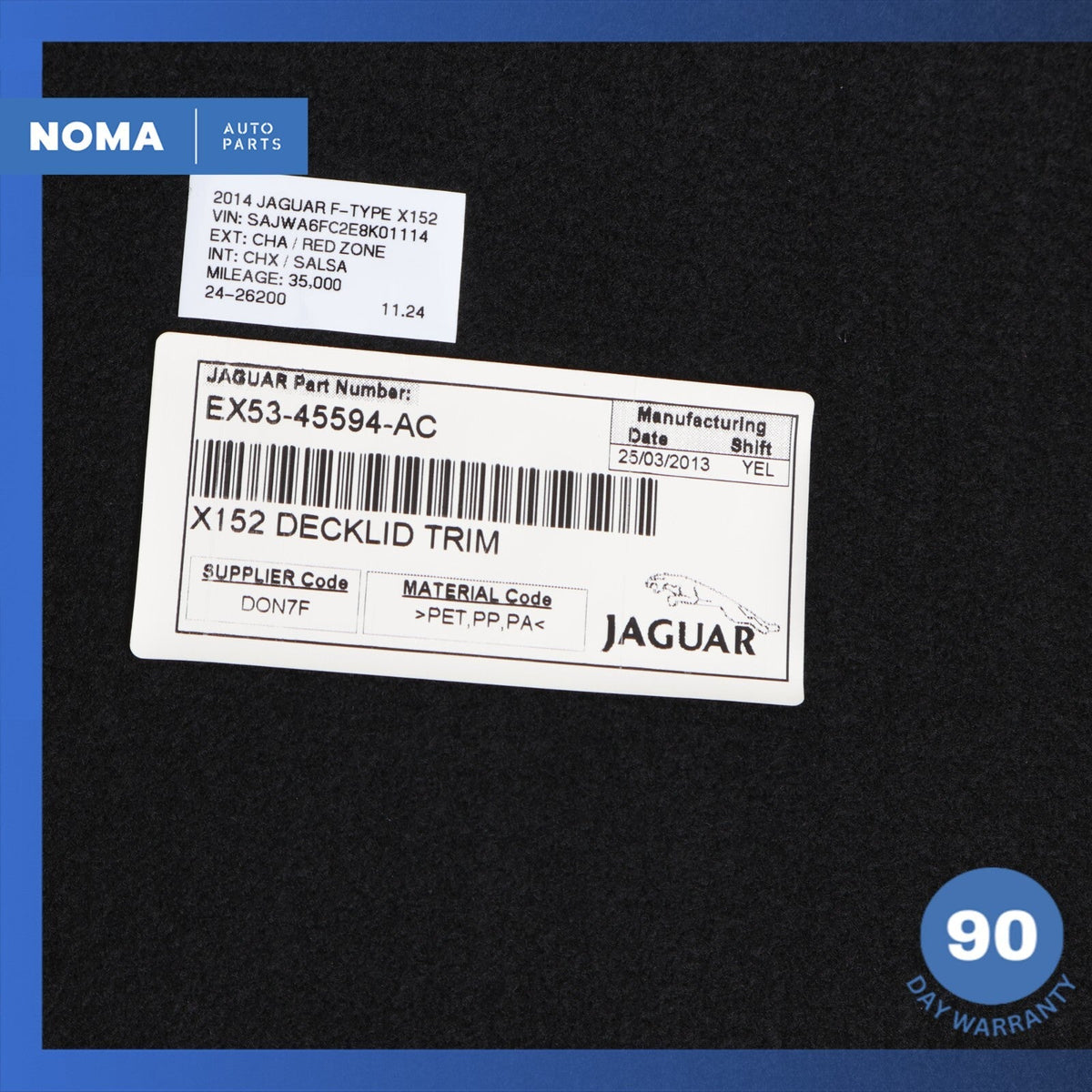 14-15 Jaguar X152 F-Type Convertible Trunk Boot Lid Lining Trim Cover Panel OEM